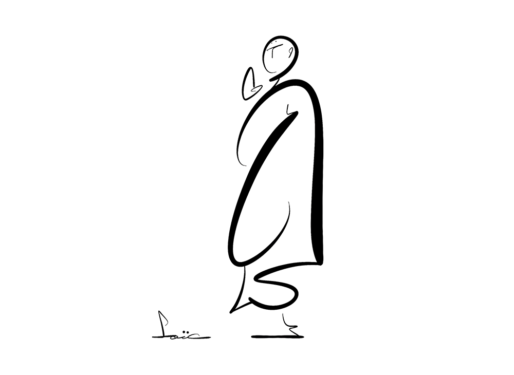 如果兵器是身體的延伸,那麼令其揮灑自如的是器械還是心念?一直想用最簡潔、最流暢、最優美的線條來描寫及刻畫人物的「精」、「氣」、「神」、「韻」,「動之以武、靜之以禪」,以「風、火、水、土」為元素,乘載「禪武」於動靜之間是為本次創作的選題及起心動念。而以中華文化書法「行草」的疾馳之勢來捨棄不必要的細節之後,僅在瞬間,線條自由了,氣場隨之凝聚,至此,「指劍」已成,遂立「印象」於「禪武」!